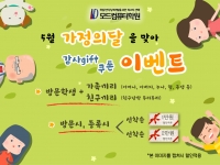 5월 가정의달을 맞아감사 쿠폰 이벤트 실시합니다^^*방문학생 + 가족끼리(어머니,아버지,누나,형,동생 등)*방문학생 + 친구끼리(친구단짝 두리두리)방문시,등록시 선착순으로 1만원~2만원 할인쿠폰을 드립니다.